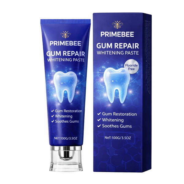 PrimeBee Gum Repair Whitening Paste breaks that cycle. Powered by bee-inspired natural actives, it gently lifts stains while actively repairing and soothing gums. You get a visibly whiter smile without pain, burning, or sensitivity — just clean, healthy confidence every time you brush.
